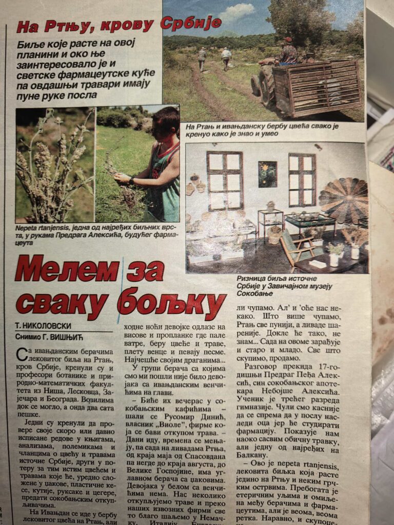 Narod je tada, po otkriću, počeo da bere ovu biljku verujući da je posebno lekovita. Kako bi je zaštitili od istrebljenja, Diklić i Milojević su podmetnuli ime Satureji montani, koja ima dosta sličnosti sa ugroženom vrstom jer su iz iste porodice.”